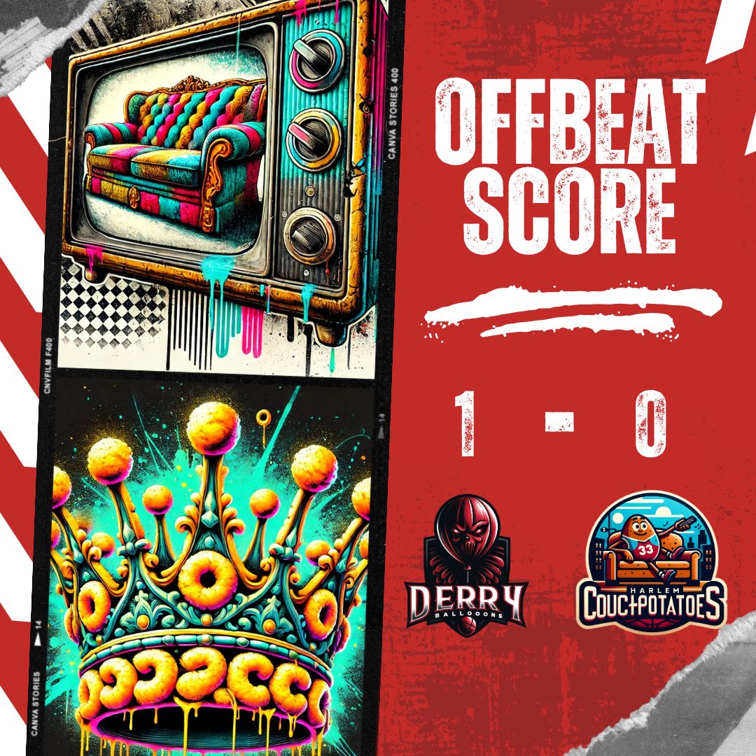 Derry, the town where logic takes a holiday and time is perpetually late to its own appointment, was the perfect host for the Offbeat League’s Halloween costume showdown. This was no ordinary match—there were no hoops, no nets, and no balls involved (unless you counted the occasional giant balloon bouncing about unpredictably). Instead, this was about style, panache, and possibly confusing your opponent into a state of utter bemusement. Derry Ballooons [sic] versus the Harlem Couch Potatoes.